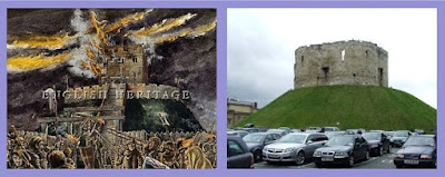The much-hyped March 16th, 1190 massacre of "150" Jews in York, when the Jewish population barricaded themselves in the royal castle, located where Clifford's Tower (pictured) now stands. After killing a monk by dropping a rock from the castle battlements and refusing entry to castle warden, the sheriff was called and a decision to storm the castle was made.