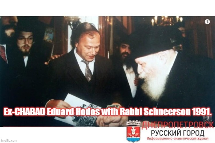 Eduard Hodos, left, as a Jew in 1991, with Chabad "Guru", Rabbi Schneerson.