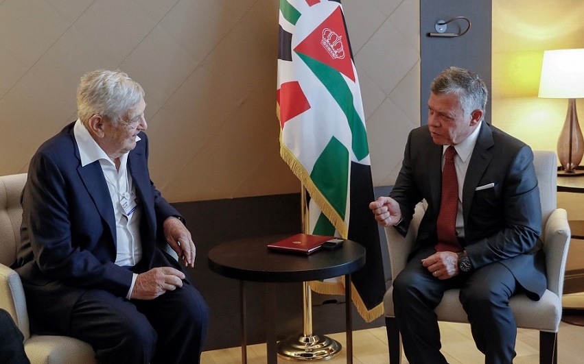 George Soros talking to King Abdullah II of Jordan at Davos, 2018. (Click to enlarge)