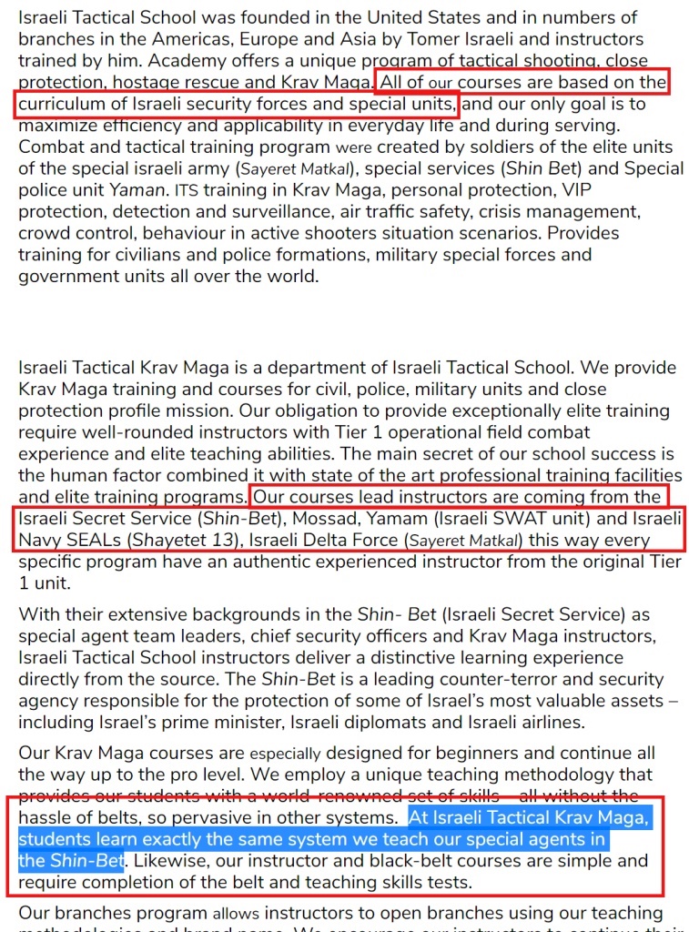 ‘Israeli Tactical School’ site offered ‘law enforcement’ training it claimed is carried out by ex-Israeli security services personnel – “based on the curriculum of Israeli security forces and special units”.