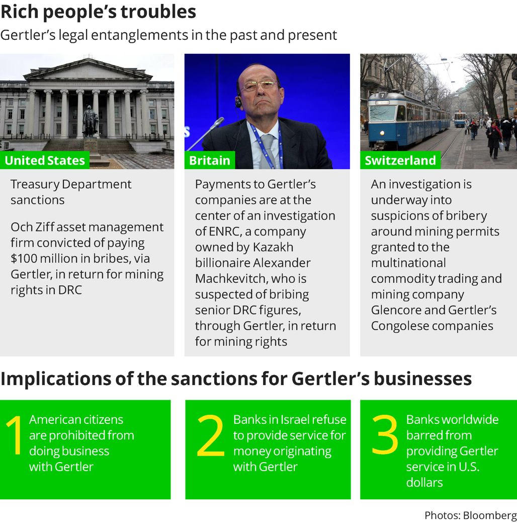 A document made available to TheMarker shows how in one case, a compliance officer in an Israeli bank warned a client – a service provider to Gertler – that a partial or mendacious declaration constitutes an offense under the Prohibition of Money Laundering Law. After contemplating the matter, the service provider reported that the source of the money was a company under the effective control of Gertler. The Israeli bank refused to accept the transfer of funds, because Gertler is on the U.S. sanctions list, and the money was sent back to Kinshasa.