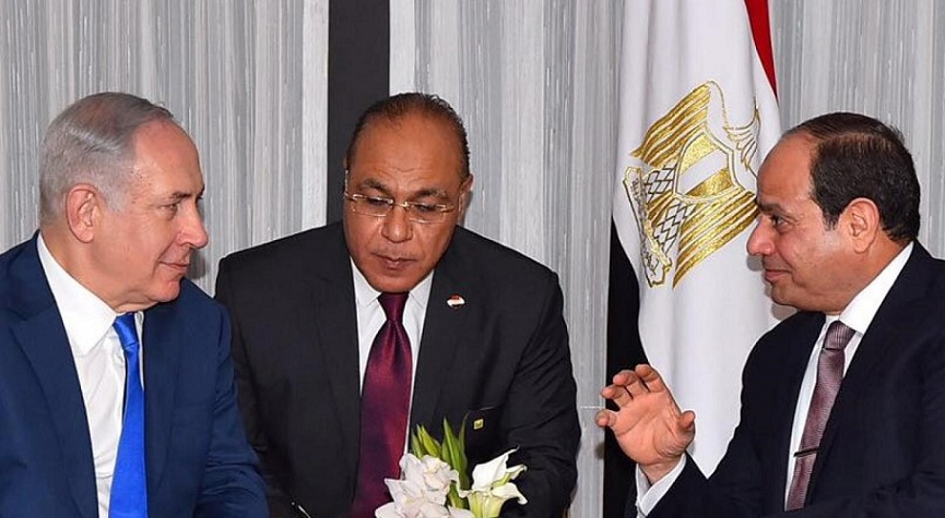 Photo: Egyptian President Abdel Fattah al-Sisi (R) speaks with Israeli Prime Minister Benjamin Netanyahu (L) during their meeting as part