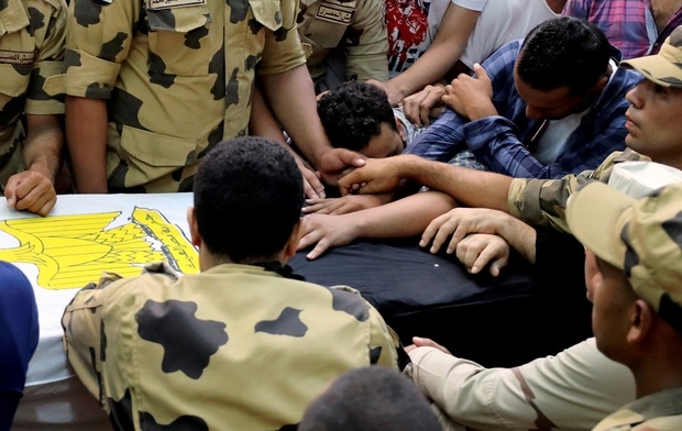 members attend the funeral of officer Khaled al-Maghrabi,