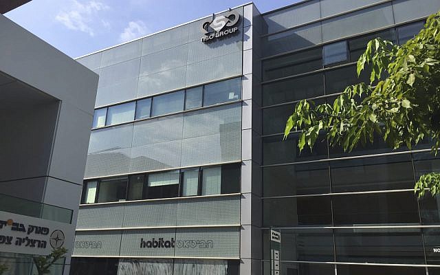 This photo from August 25, 2016, shows the logo of the Israeli NSO Group company on a building