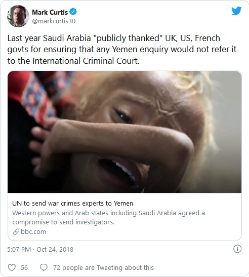 Well, that what’s happened to the Saudi dissident Jamal Khashoggi. And guess what, there have been no diplomatic expulsions of Saudi diplomats from the UK and US - as happened quite swiftly in the Skripal Case, despite Russian government involvement not being proved.