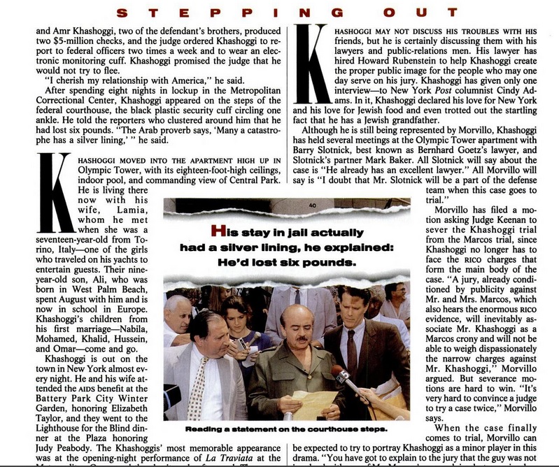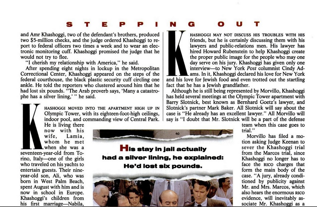 New York Post columnist Cindy Adams. In it, Khashoggi