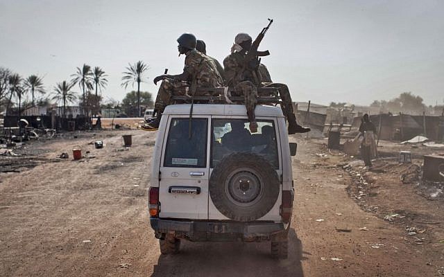 South Sudanese government forces ride on a vehicle, January 12, 2014.