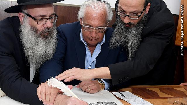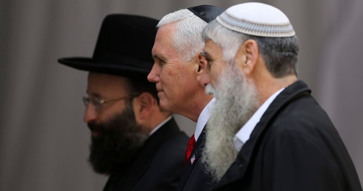 in Israel in 2017, with Jewish yarmulkes/kippahs on their heads.