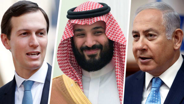 Israel's criminal Prime Minister Benjamin Netanyahu with Trump's Jewish Middle East advisors David Friedman, Jason Greenblatt and Jared Kushner