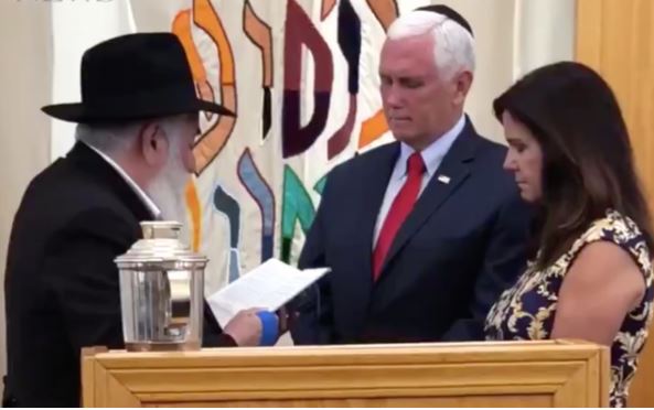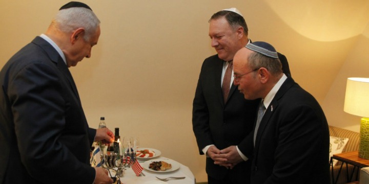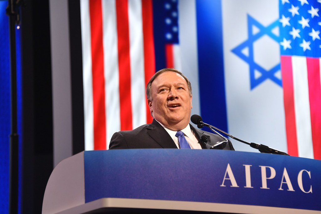 Zionist Rabbi Shmuley Boteach and former U.S. Secretary of State Mike Pompeo with Pompeo's own winebrand from Israeli occupied West Bank,