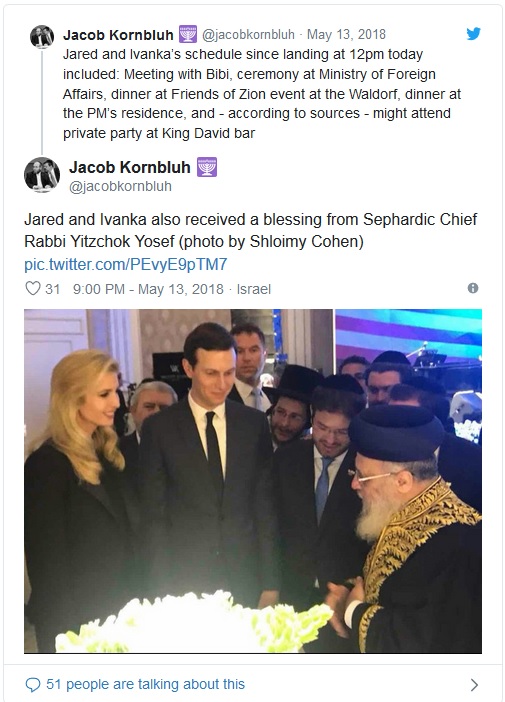 Ivanka and Jared Kushner in Israel, meeting racist Chief Rabbi Yitzhak Yosef