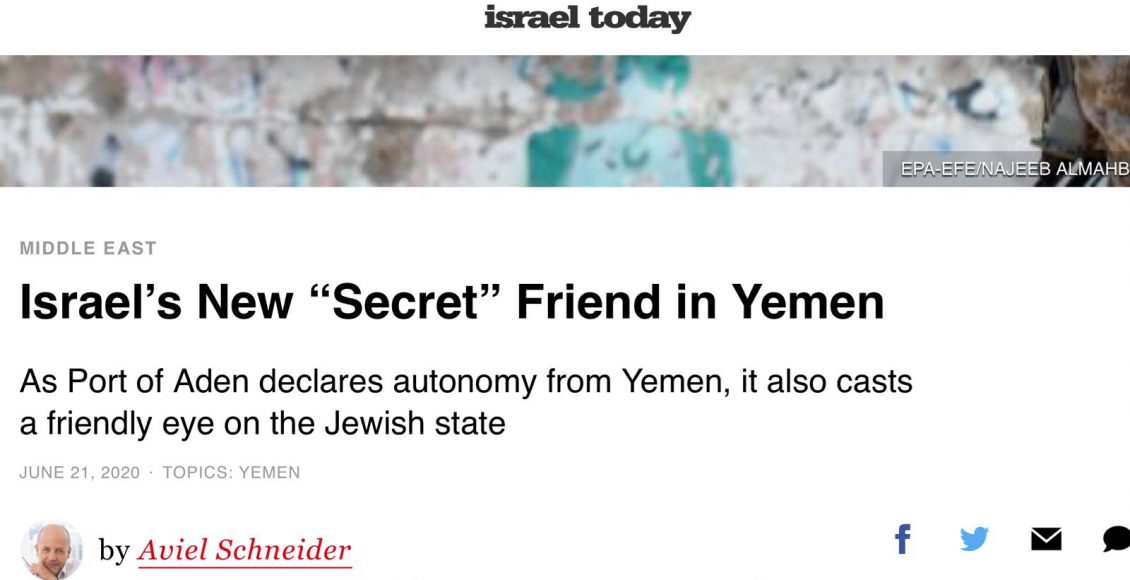 In a report entitled “Israel’s new secret friend in Yemen,” he claimed that behind closed doors, a new state in the Middle East had been declared: Aden, a colony in the south-western region of Yemen, where the South Transitional Council (STC) took control.