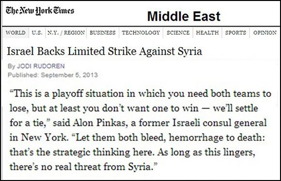 An article which appeared in the New York Times of September 5, 2013, quoted Alon Pinkas, a former Israeli consul general in New York as follows about the “civil war” in Syria: