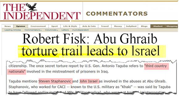 And let’s cast our eyes upon that little, all-important matter of responsibility. The actual interrogators accused of encouraging U.S. troops to abuse Iraqi prisoners at Abu Ghraib jail were working for at least one company with extensive military and commercial contacts with Israel. The head of an American company whose personnel are implicated in the Iraqi tortures, it now turns out, attended an “anti-terror” training camp in Israel and, earlier this year, was presented with an award by Shaul Mofaz, the right-wing Israeli defense minister…