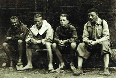 Bolesław Piasecki (drugi od lewej) z synem Bohdanem (trzeci od lewej)