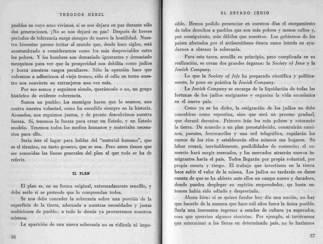 “Se nos debe conceder la soberanía sobre una porción de la superficie de la tierra, adecuada a nuestras necesidades y justas ambiciones de pueblo; a todo lo demás ya proveeremos nosotros mismos (pág. 36).