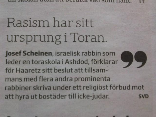 Den judiska religionen har alltid varit en grym och rasistisk religion och många av dagens massakrer och grymheter i Palestina kan spåras direkt till judendomens rötter. För att därför kunna förstå dagens judiska rasism måste man återgå till de religiösa skrifterna. Dessa återfinns främst i två skrifter. Den första av dessa är det Gamla Testamentet, den judiska Bibeln. Viktigast där i är de fem moseböckerna eller Torah, lagen, som judarna kallar dem. De fem moseböckerna är de som lägger grunden till den judiska religionen och är också utan tvekan de grymmaste böckerna i det Gamla Testamentet. Den andra källan till den judiska religionen är Talmud. Talmud är en tolkning av de äldre skrifterna som judiska rabbiner, präster, har gjort genom tiderna. Talmud är i sig mycket avslöjande eftersom där också avslöjas hur de judiska prästerna valt att tolka sina andra skrifter.