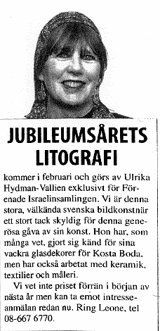 Ulrica har därutöver lyckats hålla sig till judiska företag, han har arbetat som designer för den judiska klädesfirman Kellerman (ett förtag som flitigt annonserar i de sionistiska tidskrifterna) och även gjort arbeten för Bonniers pappersföretag Duni. Inte överraskande är det också just ett glasverk av Ulrica Hydman-Vallien som Bonnier-tidskriften MånadsJournalen har som sitt årliga "Intelligens-pris".