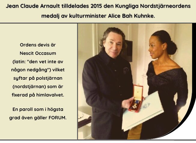 "Det är här i källaren på Sigtunagatan 14 i Stockholm, på "Forum - nutidsplats för kultur" som invandraren Jean Claude Arnault drar sitt största strå till det svenska kulturlivet. Här möts några av landets bästa musiker, författare, filosofer, dansare och skådespelare i tvärkulturella föreställningar där det direkta mötets och stundens magi står i centrum. Olika konstnärliga uttryck, dåtid och nutid möter varandra. Helhetsupplevelsen är inte given på förhand, den är upp till publiken."
