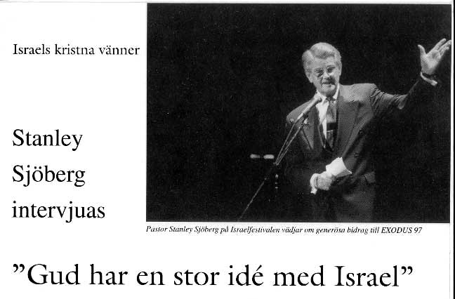Del av artikel från Förenade Israelinsamlingens tidskrift Menorah, nr.2-1997.Bildtexten ovan lyder: "Pastor Stanley Sjöberg på Israelfestivalen vädjar om generösa bidrag till EXODUS 1997."