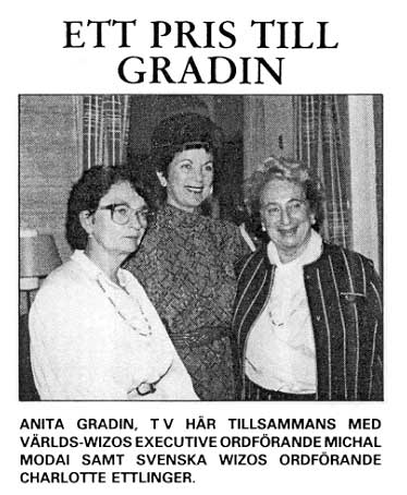 Anita Gradin, socialdemokratisk f.d. invandrar- och jämställdhetsminister, socialdemokratisk utrikeshandelsminister och biträdande statsminister samt EU-kommissionär. Har erhållit WIZO:s pris "Årets kvinna".