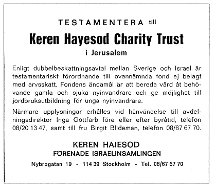 Ingmar Ström, biskopen, var vice ordförande för Israel-hjälpen (se Menorah, nr.4-1973).