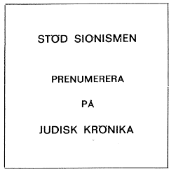 ETT STORT TACK TILL ALLA DE SOM MEDVERKAT I JUDISK KRÖNIKA UNDER 1984:Max Adler, Per Ahlmark, Rachel Apelblat, Moshe Apelblat, Tobias Berggren, Boris Beltzikoff, Edgar Broufman, Mundek Braun, Georg Braun, Jerker Belvert, Anette Birnbaum, Anders J Carlberg, Sixten Chudi, Franz T Cohn, Ellen Dahlberg, Michael Druker, Eva Dickson, Lars Dencik, Berith Enk, Charlotte Ettlinger, Kaj Ettlinger, Kerstin Eklund, Georg Eisman, Alain Finkielkraut, Dan Fibert, Pål Friberg, Morris Fred, Dan Gordon, Berndt Fürst, Paul Fränkel, Margot Friedman, Stephen Farran-Lee, David Fischer, Gabi Gleichmann, Leon Gerson, Marianne D Goldman, David Grossman, Anita Gradin, Lars Gustafsson, Evelyn Gottlieb, Peter Guter, Kristian Gerner, Svante Hansson, Werner Hauser-Gronowitz, Anna Hirschfeld, Disa Håstad, Göran Holmberg, Stefan Jensen, Andres Küng, Danilo Kis, Hans W Levy, Jan-Erik Levy, Ingrid Lomfors, Erwin Leiser, Jörgen Lööf, Jörgen Lazar, Boris Lewinschal, Ivar Müller, Leif Nelson, Ricki Neuman, Renée Neuman, Morton Narrowe, Cynthia Ozick, Lena Posner, Salle Rytz, Robert Rock, Josef Ram, Helena Raber, Reuven Rubin, Tommy Ringart, Harry Rubinstein, Bertil M Rubinstein, Salomon Schulman, Josephine Siskind, Stefan Meisels, Theodor Soback, Leopold Sommerfelt, Josef Sendowski, Krister Stendahl, Frans Sved, David Schwarz, Tomas Z Sallmander, Mirjam Sterner-Carlberg, Sara Saks, Willmar Sauter, Judith Vogt, Jonas Widgren, Robert L Wolkoff, Jan Erik Wikström, Carl-Otto Werkelid, A BYehoshua