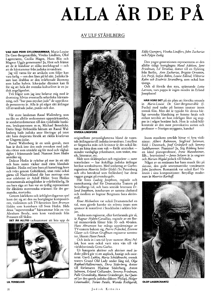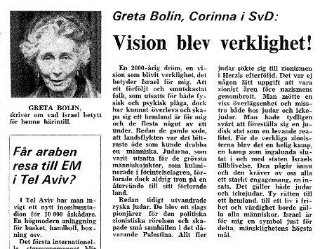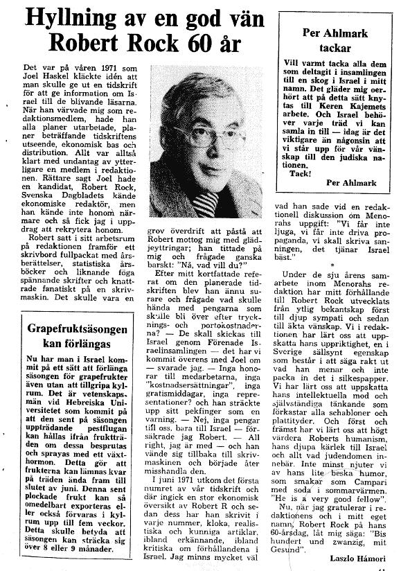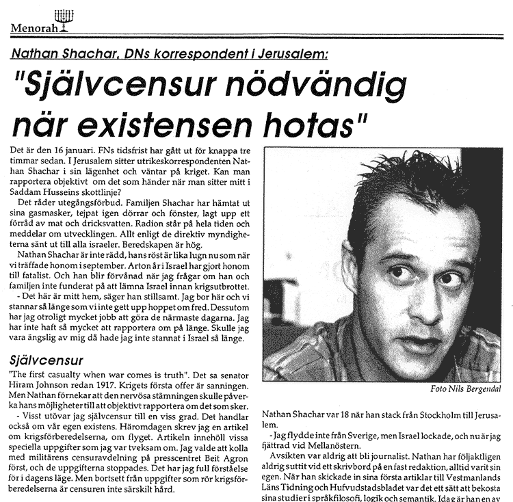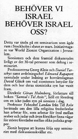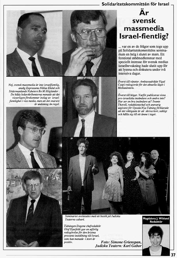 Artikeln ovan var publicerad i Förenade Israelinsamlingens tidskrift Menorah, nr.2-1993.Svenska massmediaprofiler på två-dagars seminarium i regi av Solidaritetskommittén för Israel och medverkan av Israels dåvarande ambassadråd i Sverige, Yigal Caspi.