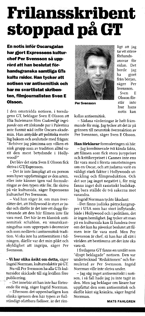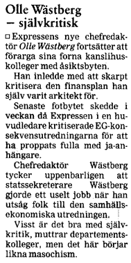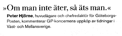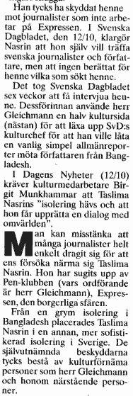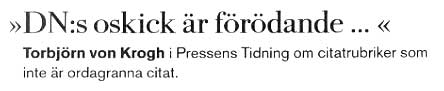 "Det finns sällan skäl att ta vår malligaste morgontidning [DN] i försvar. Blir man uppringd av någon av dess reportrar gäller det att passa sig. Risken är avsevärd att man blir felciterad med avsikt, antingen för att framstå som korkad eller som skyldig till vad nu anklagelsen gäller. Av detta har jag gedigen egen erfarenhet."