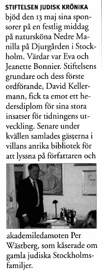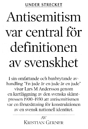 Not: Stockholms Dagblad hade f.ö. Gustaf Reuterswärd, gift med judinnan Lamm, som huvudredaktör 1919-1921 och även som militär medarbetare, och judarna Henrik Schück och Eli Heckscher hörde till dess medarbetare.