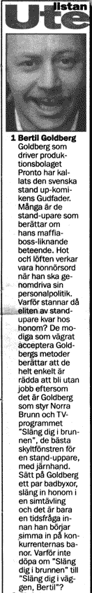 Bertil Goldberg. Bertil Goldberg står bakom SUCK/Pronto Production. Han har tidigare varit programledare i radioprogrammet "Natti natti" tillsammans med Kjell Dabrowski, se denne.Bertil Goldberg har också varit verksam inom Nationalteatern och exempelvis gjort både musik och text till låten "Folkens kamp", som sjungs av Björn Afzelius (1984). Se intervju i Judisk Krönika, nr.6-1997.