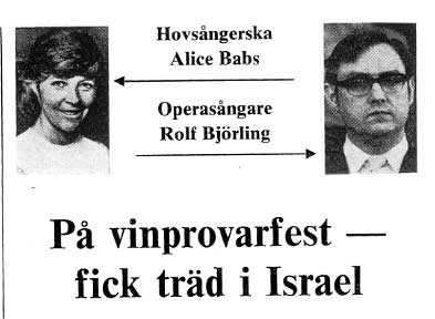 Den kända sångerskan Alice Babs Sjöblom har - okänt för de flesta - mycket starka känslor för den judiska ockupantstaten Israel, och detta sedan många år tillbaka.I Menorah, nr.1-1994, kallar man henne för en "engagerad Israel-vän".