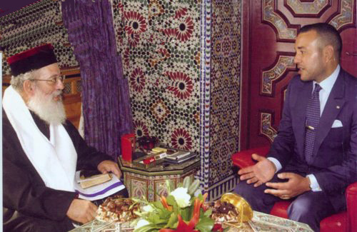 اللوطي "اللواط" المتصهين "محمد السادس" يتلقى دعاء ومباركة الحاخام اليهودي الذي - حسب مصادر مطلعة - هو مؤلف الدعاء الرسمي الذي يفتتح به رؤساء وملوك العرب مؤتمرات قممهم أو "قمامتهم" |